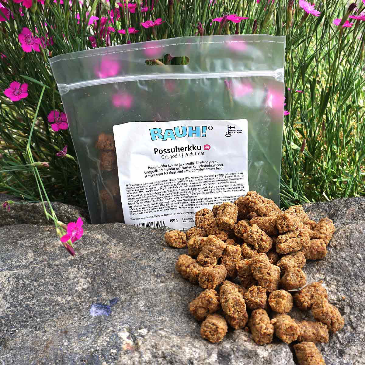 Belönar du med godis ska det vara både nyttigt och gott som nötgodiset från RAUH. Tillverkat i Finland av finskt kött. Köttinnehållet är 94%.