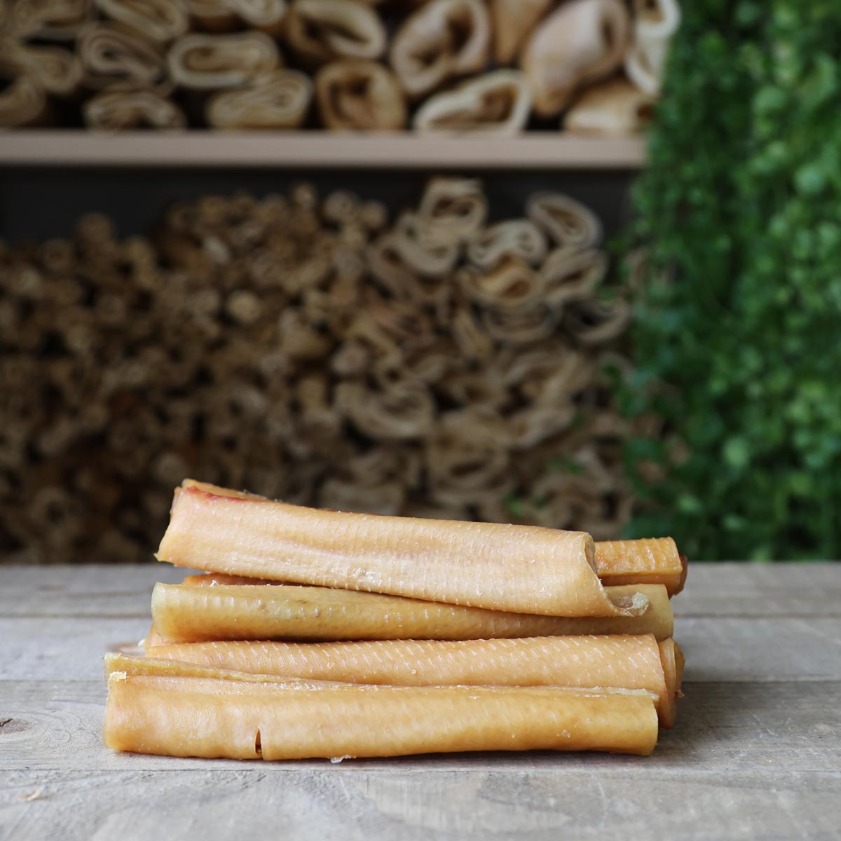 Fin torkad tjurmuskel, närproducerad med svenska råvaror och helt utan tillsatser. Både naturligt och näringsrikt. De flesta hundar älskar att tjurmuskel som tugg, den är oerhört populär hos oss. Dessutom är den producerad med solenergi, hela ladugårdens tak är fyllt av solceller. Så hållbar produktion. Solel och vatten är vad som går åt vid produktionen.