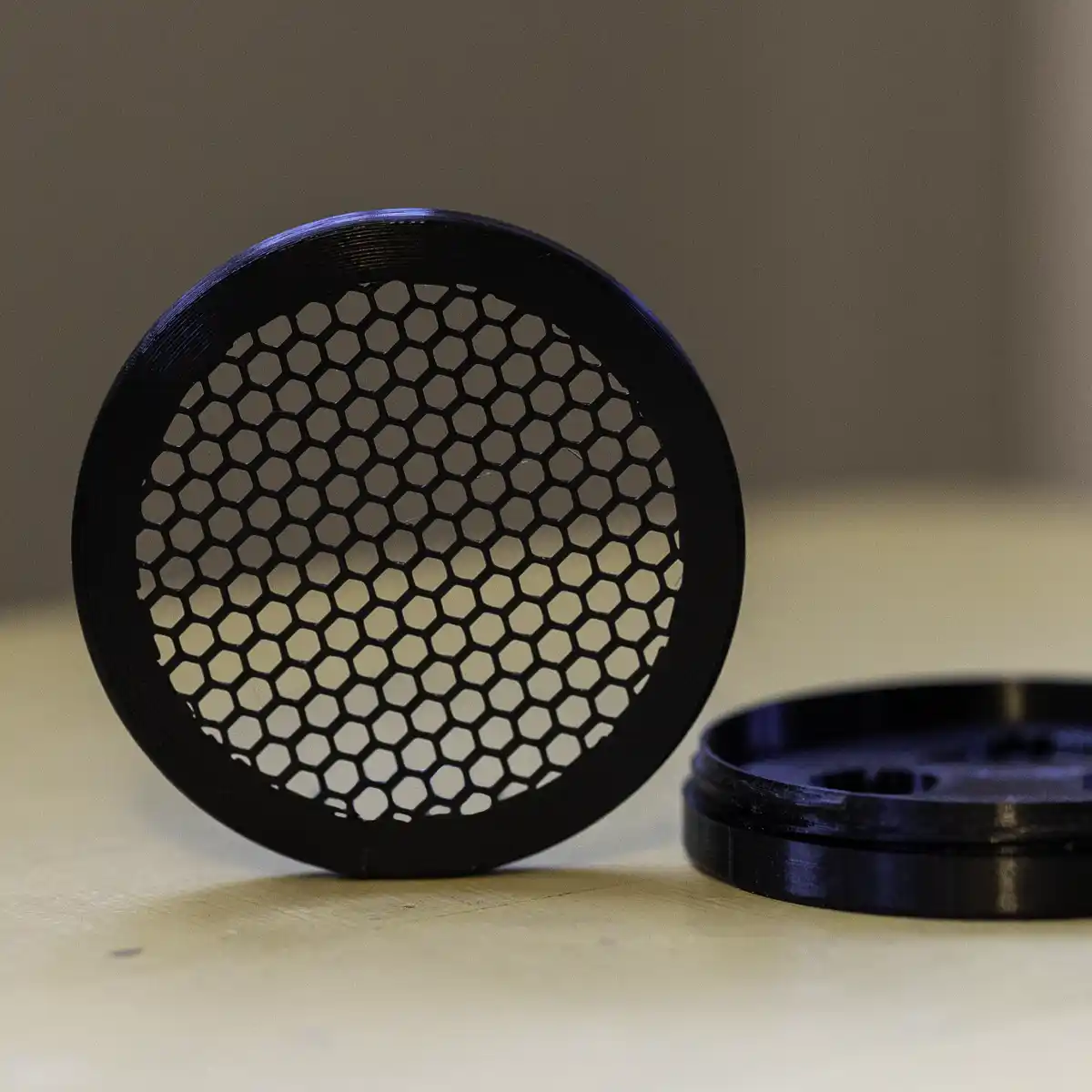 Denna lilla runda dofthållare är en dosa med skruvlock och den är gjord av PLA som är ett fossilfritt, plantbaserat material. I dosan placerar du din preparerade doftbärare, i HONEY rekommenderar vi att du använder tops. Du kan gömma HONEY riktigt klurigt både i inomhussök, utomhussök och på fordon. Dofthållaren har ett honeycomb-mönster i botten, som släpper ut doftmolekylerna. Varken nosen eller omgivningen kommer i kontakt med doftbäraren.