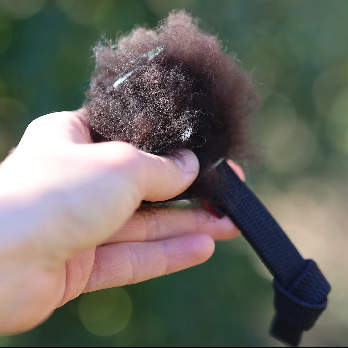 En kul hundleksak som triggar igång jaktlust, bus och fart. Remmen är av dubbel, mjuk velour med knut i ena änden och en tofs av svenskt fårskinn i den andra. Vi tycker den är både fin för oss och rolig för hundarna. Den passar riktigt bra till valpar.