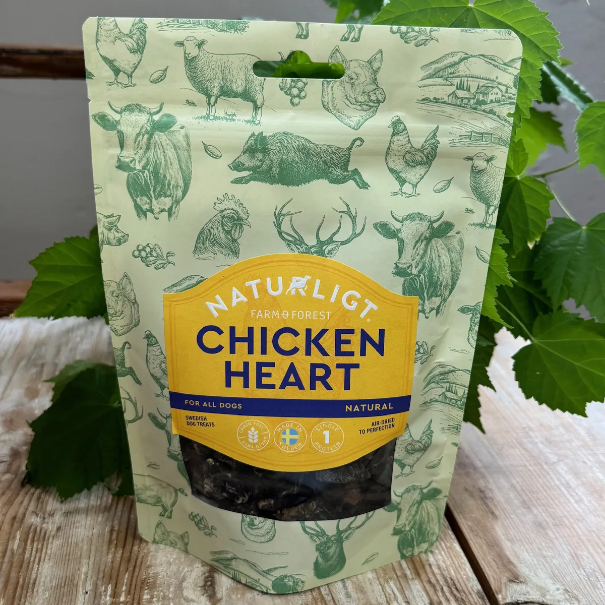 Hundgodis på svenskt hjärta från nöt. Lufttorkade bitar av nöthjärta är en riktig vitaminbomb som du kan belöna din hund med. Det är både nyttigt och naturligt hundgodis med låg fetthalt. Rikt på proteiner, aminosyror inklusive taurin, B-vitaminer tiamin (B1) och folat (B9), järn, fosfor, kalium, zink och selen. Hundgodiset kommer från det svenska märket Farm & Forest®. Godiset är naturligt utan tillsatser och produktionen sker i Sverige.