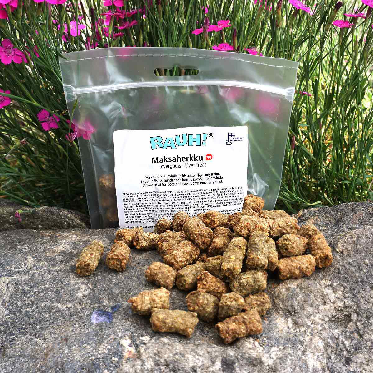 RAUH har all tillverkning i Finland och råvaran är finsk och noga utvald. Köttinnehållet är 91%.