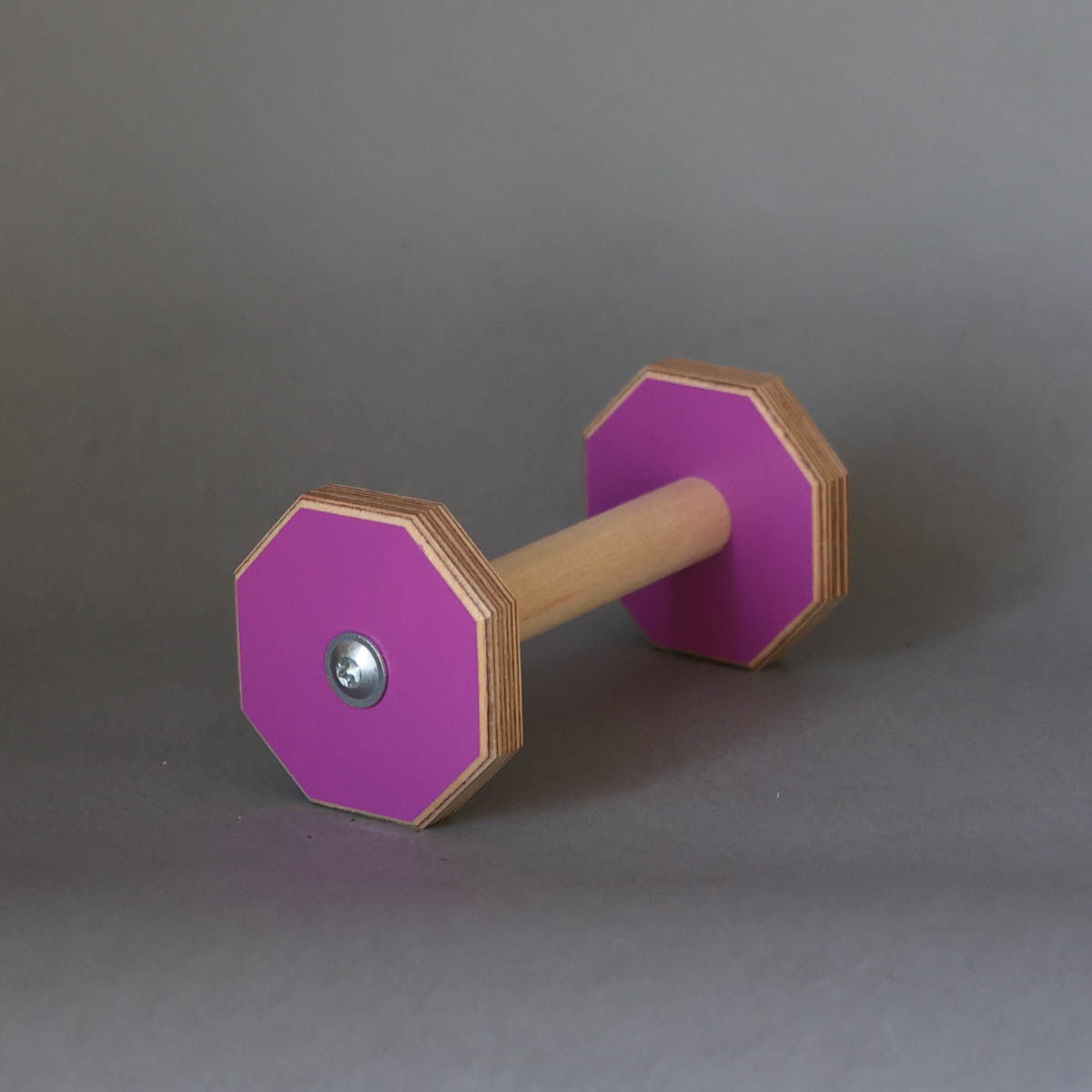 Klassisk lydnadsapport i lila och storlek MINI, ett fint hantverk, tillverkad i Sverige. Lydnadsapporten är mycket stabil och hållbar, tillverkad i bra material. Greppinnen är av hård ek och sidorna är av handmålad björkplywood med naturfärgade kanter. Apporten passar på både träning och tävling.