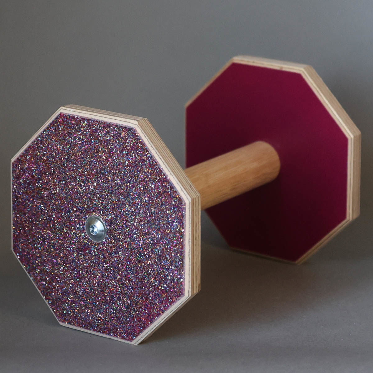 Lydnadsapport utöver det vanliga, som ger festkänsla till träningen. Lydnadsapporten Larz Glitterz har glittereffekt i färgen och en hård glänsande lackyta som gör den superglansig och dessutom extra tålig. Denna har lila, glittrig utsida och enfärgad lila insida. Den är i storlek STOR. Apporterna från Larz Glitterz är ett riktigt fint hantverk och de är tillverkade i Sverige. Lydnadsapporten är mycket stabil och hållbar, tillverkad i bra material. Greppinnen är av hård ek och sidorna är av handmålad björkplywood med naturfärgade kanter. Alla apporter du kan beställa hos oss finns i lager och skickas omgående, så du kan träna direkt nästan.