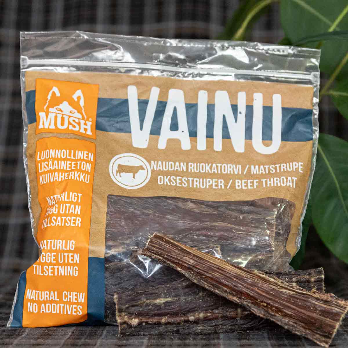 Fin torkad tjurmuskel, närproducerad med svenska råvaror och helt utan tillsatser. Både naturligt och näringsrikt. De flesta hundar älskar att tjurmuskel som tugg, den är oerhört populär hos oss. Dessutom är den producerad med solenergi, hela ladugårdens tak är fyllt av solceller. Så hållbar produktion. Solel och vatten är vad som går åt vid produktionen.