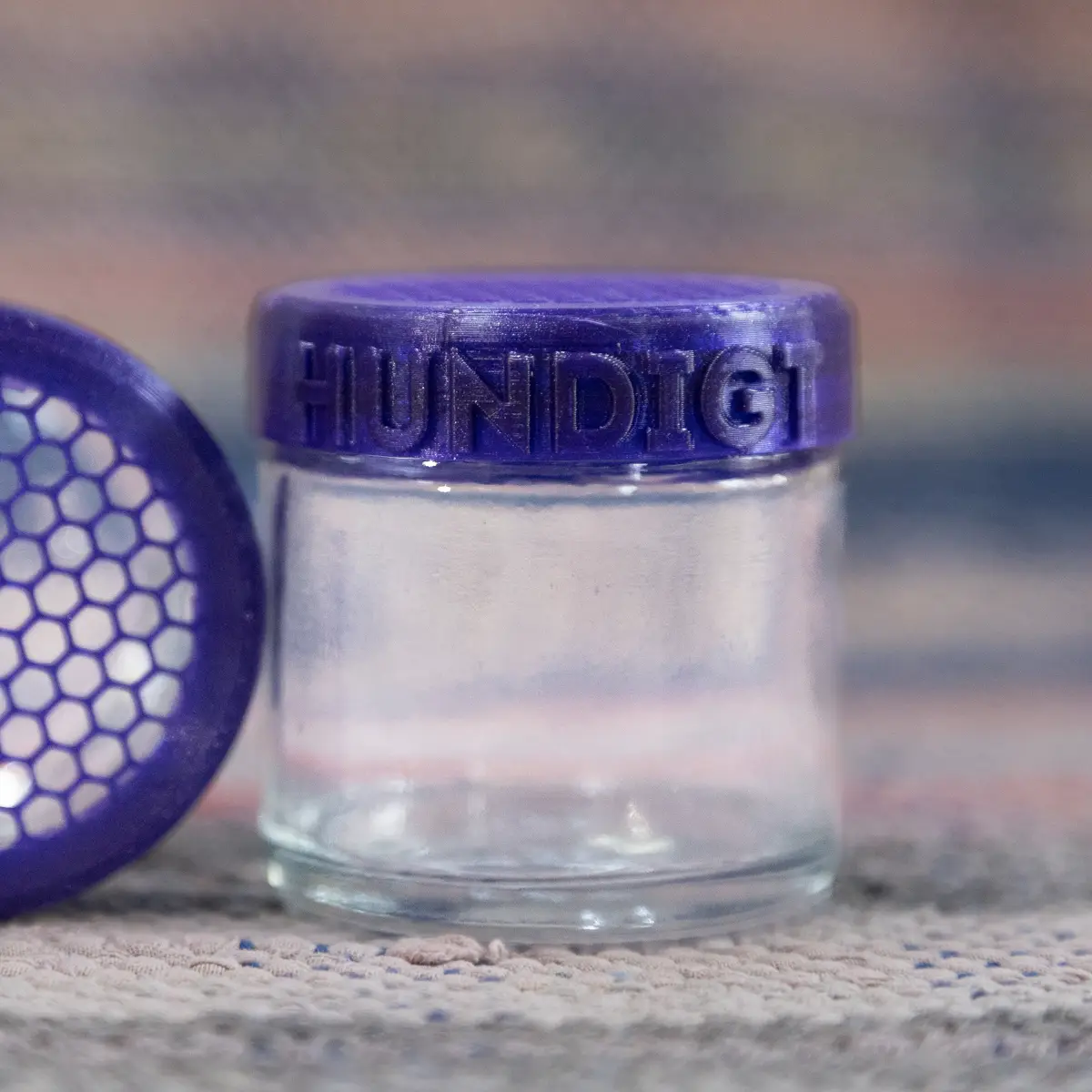 Smellerburk till Nose Work. En smellerburk används ofta när du lär in doften eller tränar markering. Du kan också använda flera till en urvalsbana. Hundigts smellerburk är en liten och behändig glasburk med ett lock av PLA, denna har ett svart lock. Locket har ett honeycomb-mönster som släpper ut mycket doft. I burken placerar du en doftbärare med hydrolatet. Vi tycker mycket om att använda pads som vi klippt i mindre bitar i smellerburken.