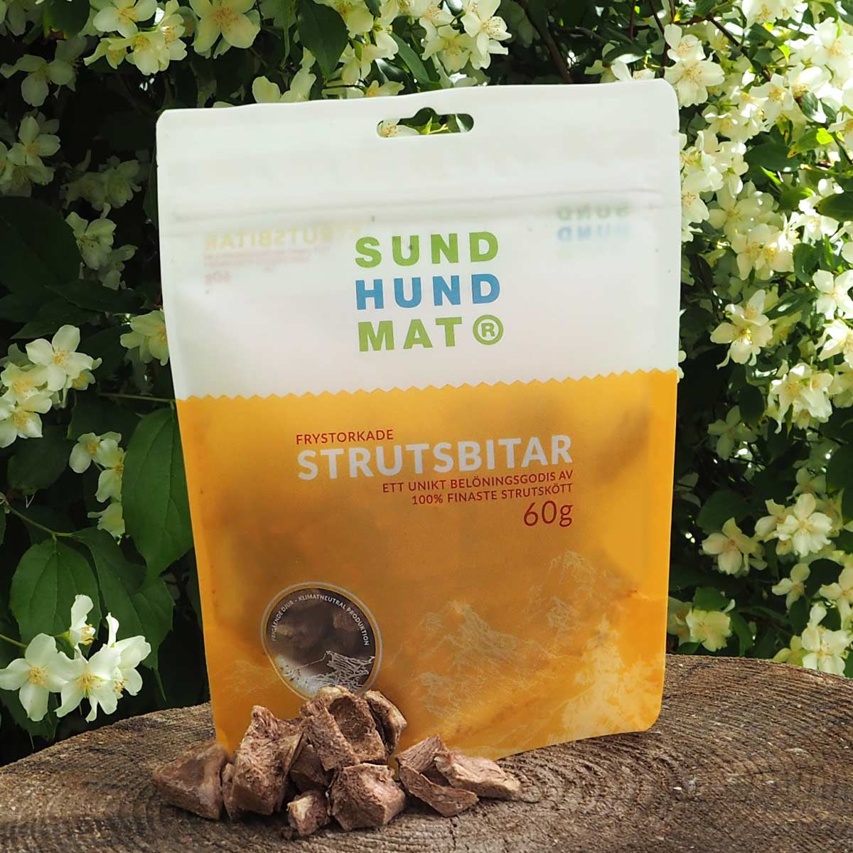 Hjortbitar från Sund Hundmat är ett frystorkat hundgodis som smakar gott, är nyttigt och ett bra miljöval. Hjortbitarna kommer från djur som fått möjlighet att gå ute varje dag hela året.